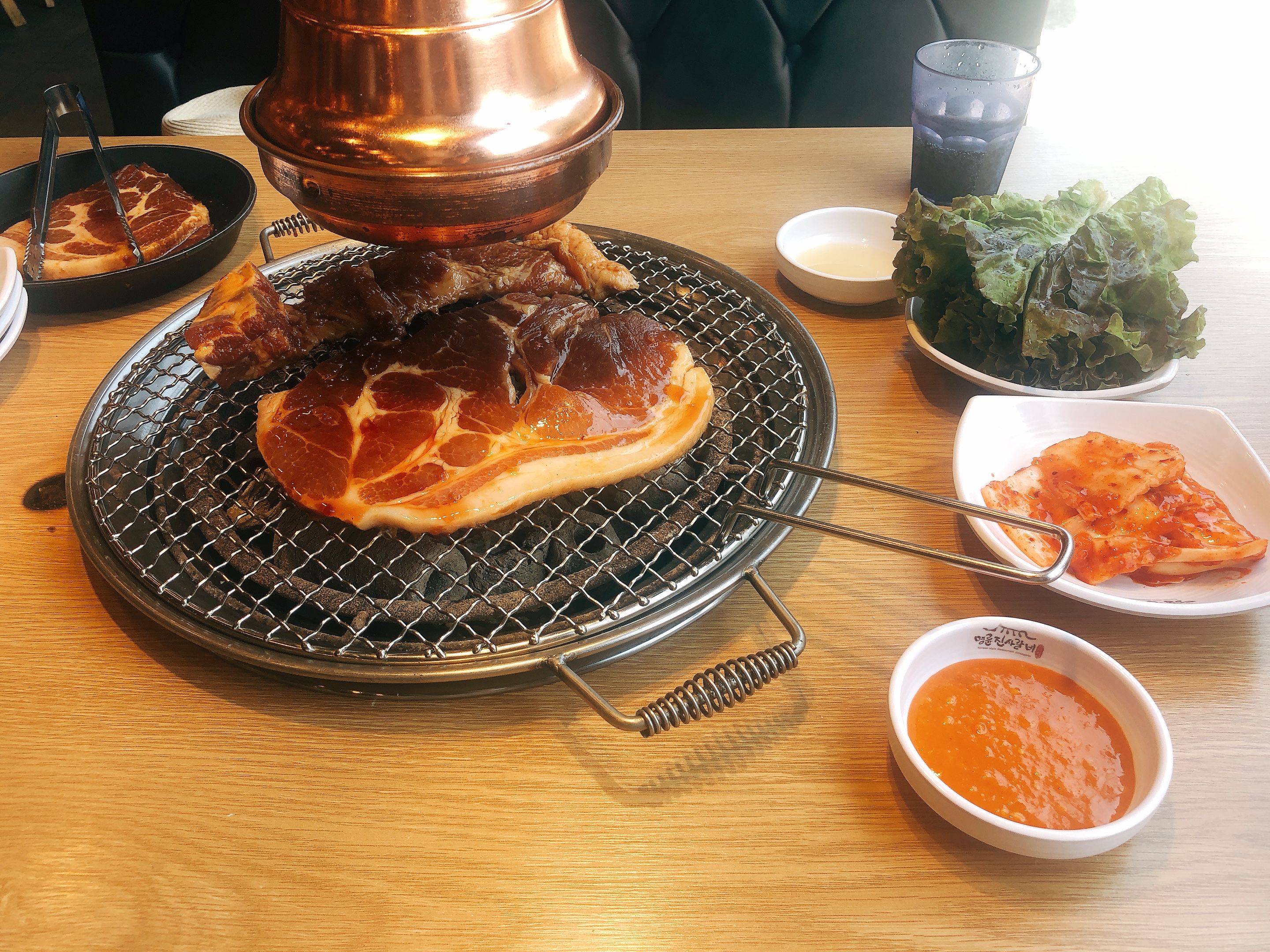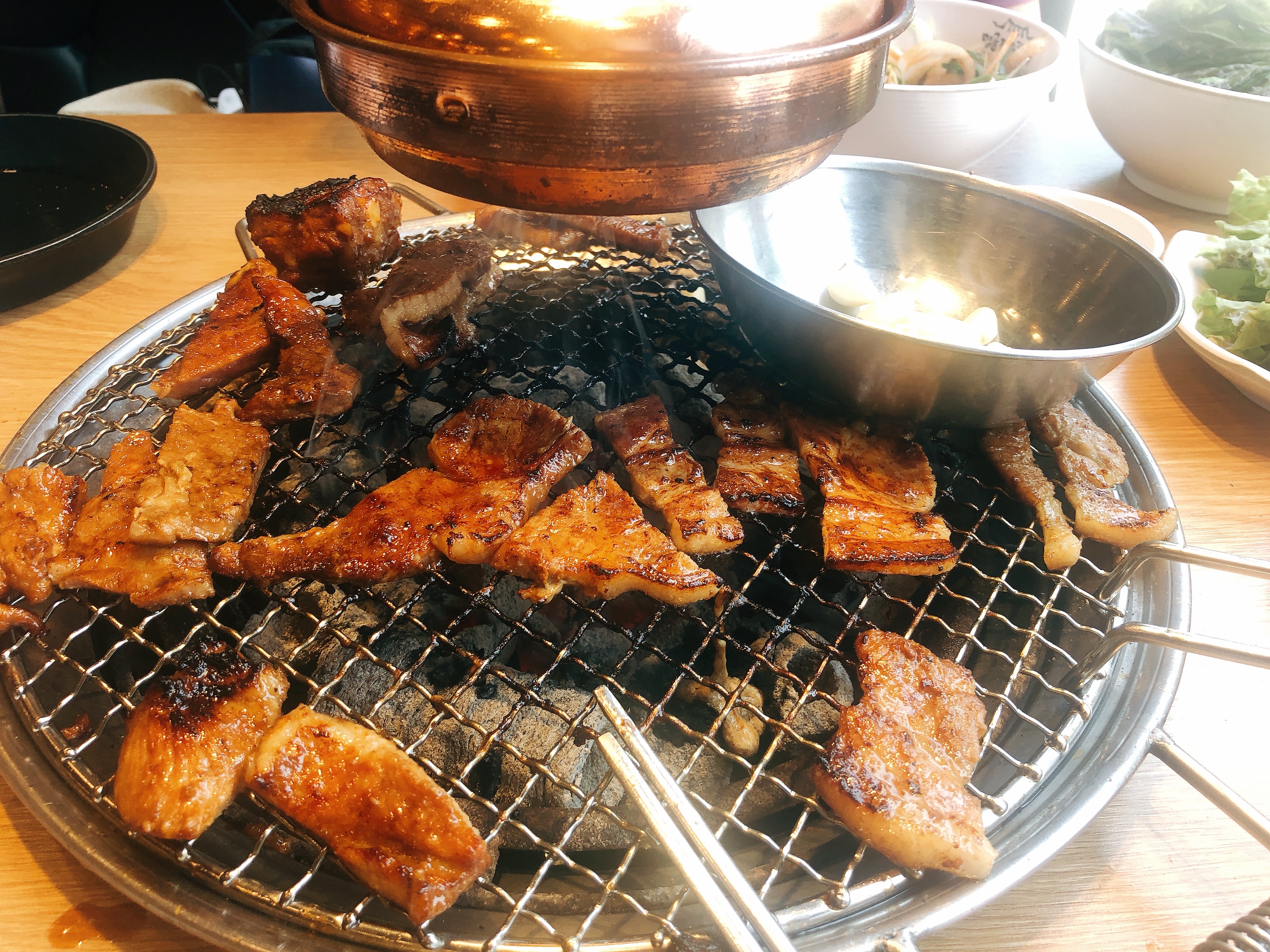 테이블에 놓여있던 스테인레스 그릇에 마늘을 굽고 있었는데, 직원이 오더니 저 그릇이 아니라 야채 코너에 준비된 작은 그릇이 있다고 알려 주었다.