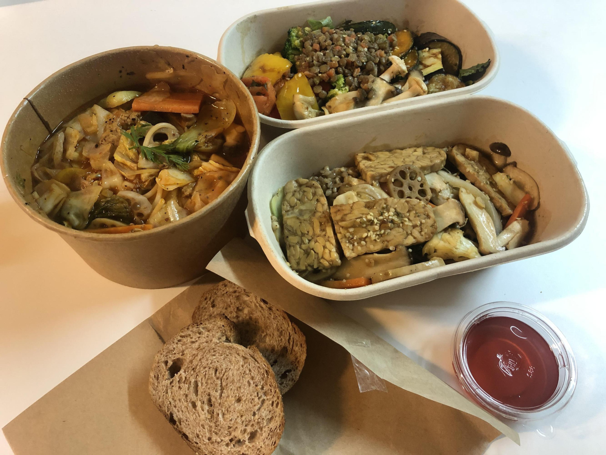 건강한 비건식으로 유명한 써니 보울을 소개한 적이 있다. 오늘은 배달의 민족을 통해 이곳 음식을 주문해 먹었다. 새로운 메뉴인 채소 짬뽕과 최애 메뉴인 써니 샐러드, 그리고 템페 채소 덮밥 이렇게 세 가지였다. 아래 왼쪽은 함께 딸려오는 통밀빵이고, 오른쪽은 샐러드에 넣을 드레싱이다.