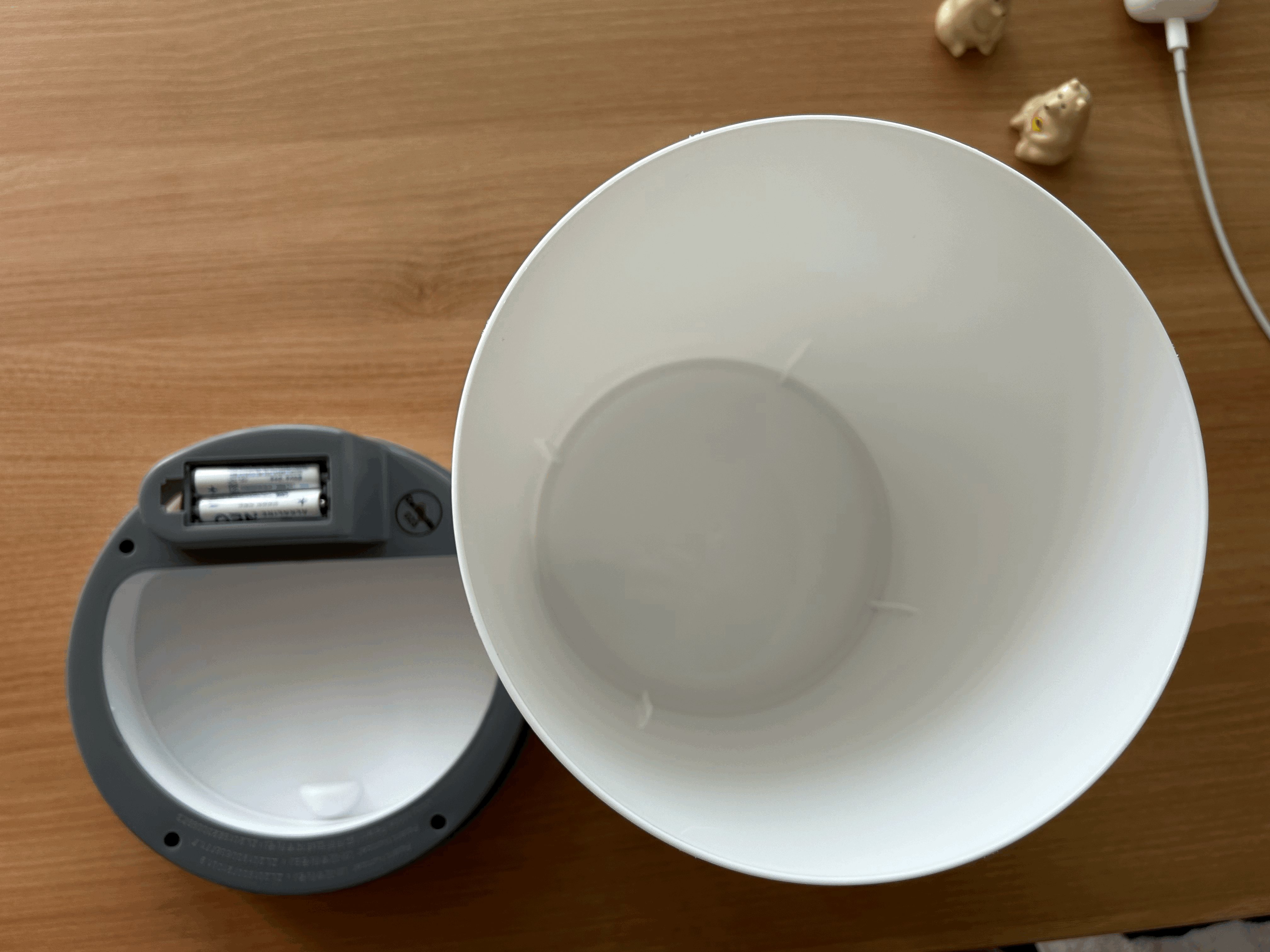 뚜껑을 열어보면 이런 구조다. 아래쪽은 그야말로 단순한 쓰레기통 그자체. AAA 건전지 두 개를 넣어 센서를 작동시키는데, 센서며 건전지며 전부 윗뚜껑에 달려있다.